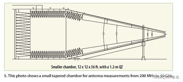 眾所周知,矩形暗室比較容易制造,在低頻情況下的物理尺寸非常大,而且隨著頻率的提高工作性能會更好。相反,錐形暗室制造起來較復雜,也更長一些,但寬度和高度比矩陣暗室要小。隨著頻率的提高(如2GHz以上),對錐形暗室的操作必須十分小心才能確保達到足夠高的性能。